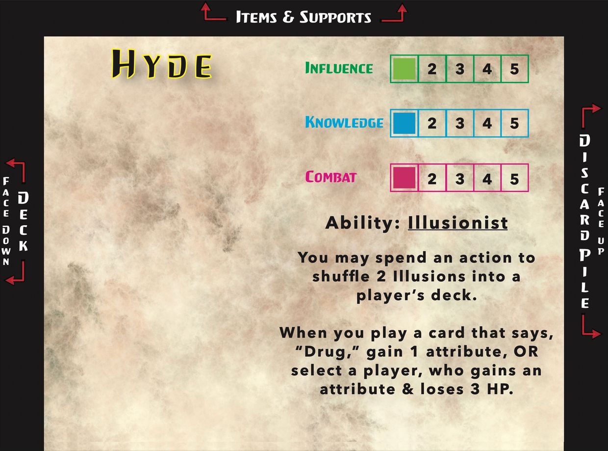 Additionally, Hyde's ability allows him to use cards with the keyword, "Drug."